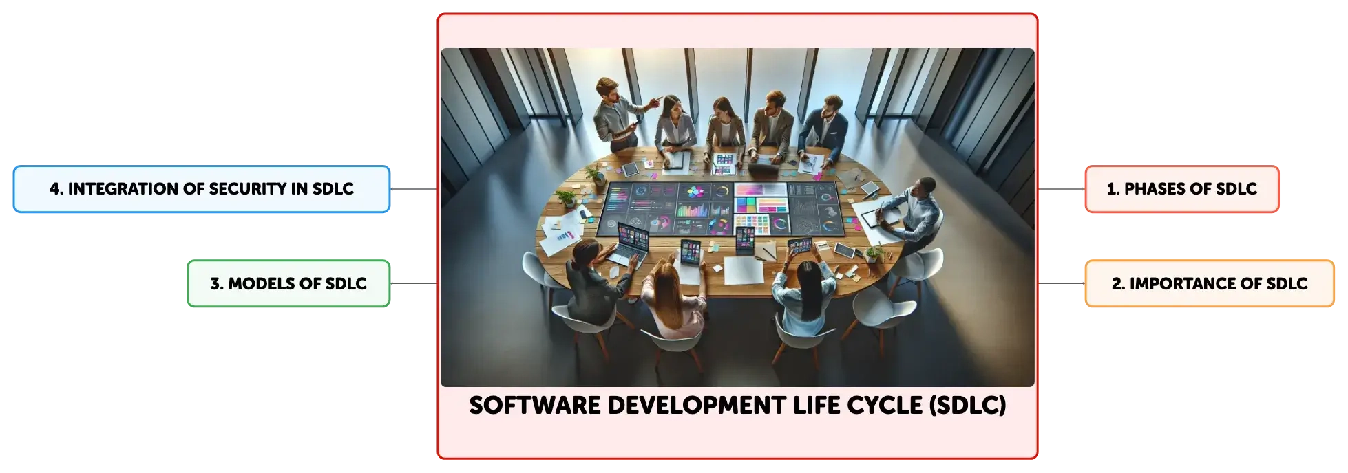 The Software Development Life Cycle (SDLC) is a methodology that guides software creation through phases such as planning, requirements, design, development, testing, deployment, and maintenance. It ensures high-quality software that meets user needs and incorporates security measures to protect against cyber threats. Different SDLC models like Waterfall, Agile, and Adaptive offer flexibility for various project types.