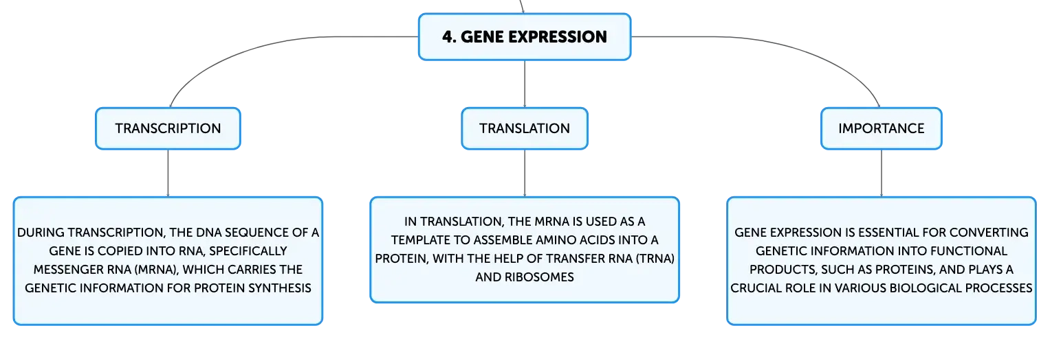 Gene expression is the process by which the instructions in our DNA are converted into a functional product, such as a protein. This process can be divided into two main steps: transcription and translation. During transcription, the DNA sequence of a gene is copied into RNA (specifically, messenger RNA or mRNA) by the enzyme RNA polymerase. This mRNA then carries the genetic information needed for protein synthesis from the nucleus to the cytoplasm, where the cell’s ribosomes are located. In translation, the mRNA is used as a template to assemble amino acids into a polypeptide chain that will fold into a functional protein. The ribosome reads the sequence of mRNA bases in groups of three, known as codons, and matches them with the corresponding amino acids, which are brought to the ribosome by another type of RNA called transfer RNA (tRNA). The sequence of codons determines the sequence of amino acids in the protein.Techniques and Advancements in DNA Sequencing