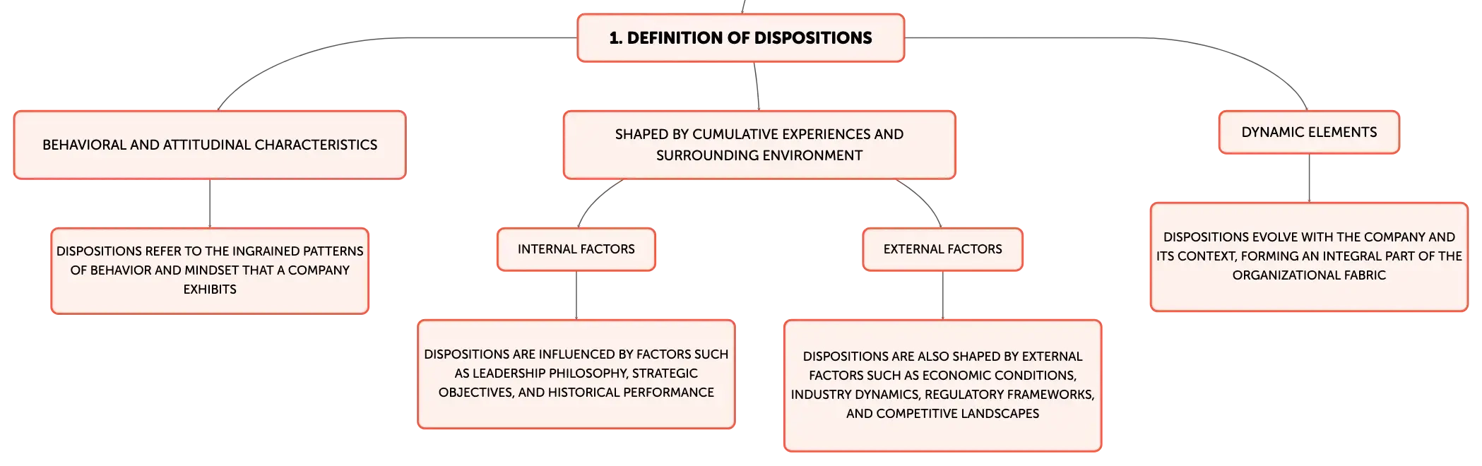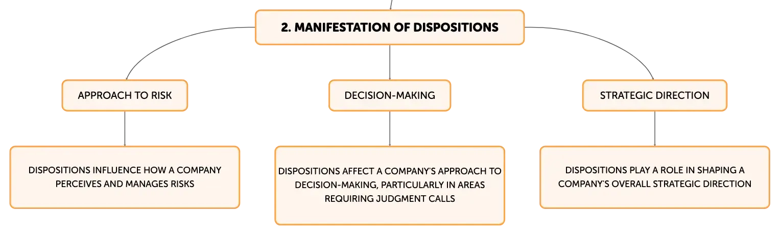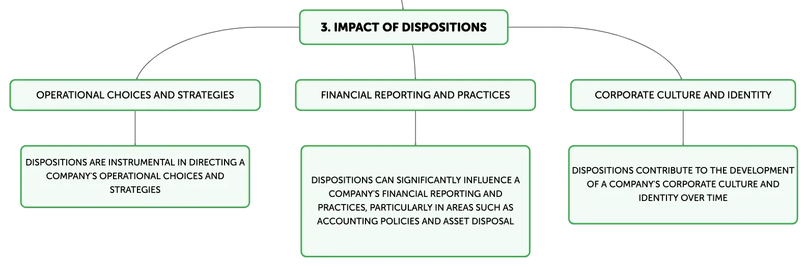 Exploring the role of dispositions in business, this content delves into how ingrained behaviors and mindsets influence a company's strategic choices, risk management, and adaptability. It examines the factors that shape these dispositions, their evolution, and their impact on accounting practices and financial reporting. Understanding a company's dispositions is crucial for anticipating its future conduct and strategic planning.
