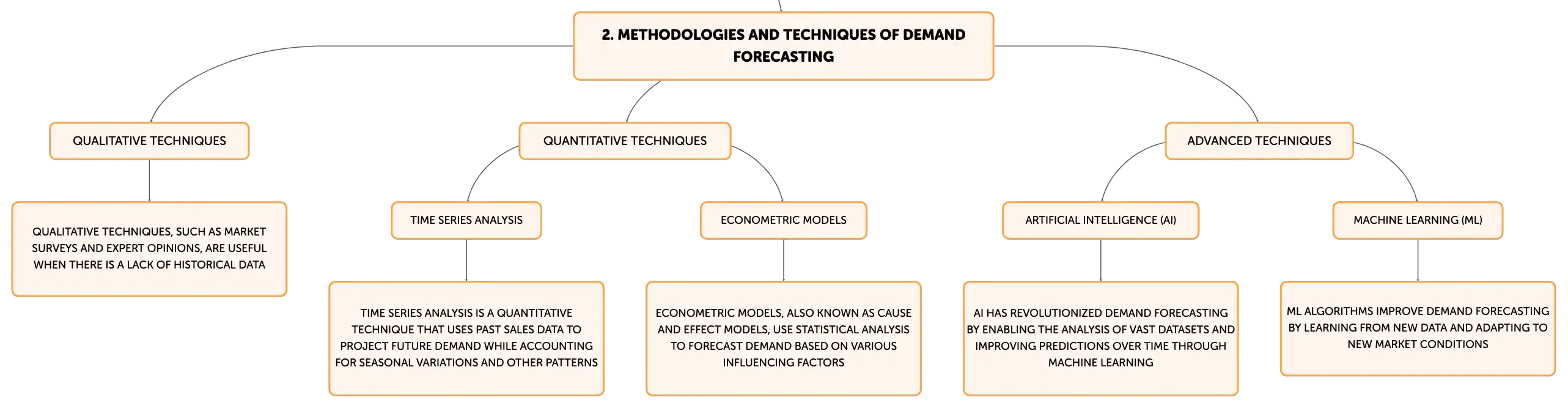 Demand forecasting techniques are broadly classified into qualitative and quantitative categories. Qualitative techniques, such as the Delphi Method, market surveys, and the sales force composite approach, rely on expert opinions and are particularly useful when there is a lack of historical data. Quantitative techniques, like Time Series Analysis, econometric models (cause and effect), and exponential smoothing, depend on the statistical analysis of historical data and are commonly employed for short-term forecasting.Leveraging AI and Machine Learning for Enhanced Demand Forecasting