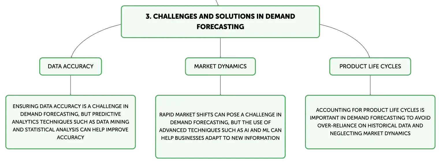 Demand forecasting is not without its challenges, which include ensuring data accuracy, adapting to rapid market shifts, and accounting for product life cycles. Predictive analytics, which encompasses techniques such as data mining, statistical analysis, and the application of ML and AI, offers solutions to these challenges. Nevertheless, forecasts are inherently probabilistic and should be interpreted with an understanding of their limitations and the uncertainties involved.A Survey of Demand Forecasting Models