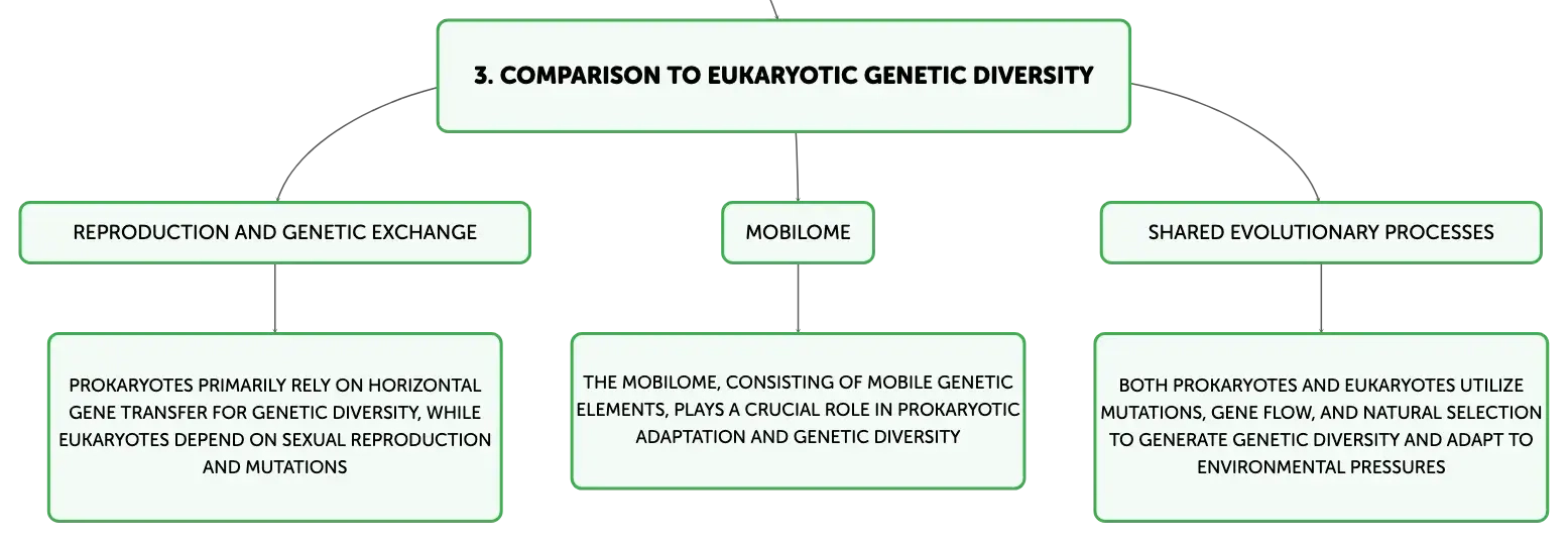 Exploring the role of genetic diversity in prokaryotic adaptation, this overview highlights how bacteria and archaea evolve through mutations, horizontal gene transfer, and other mechanisms. These processes allow prokaryotes to rapidly adapt to environmental changes, develop antibiotic resistance, and survive in extreme conditions. The text delves into the contrast between prokaryotic and eukaryotic genetic diversity, emphasizing the unique ways in which single-celled organisms ensure their survival and proliferation.