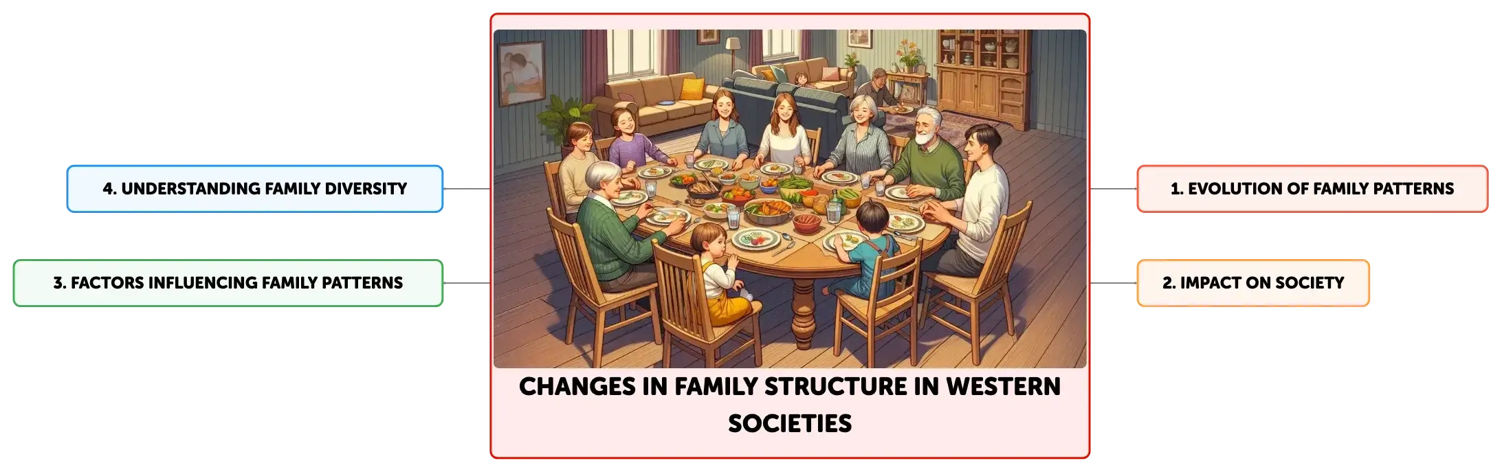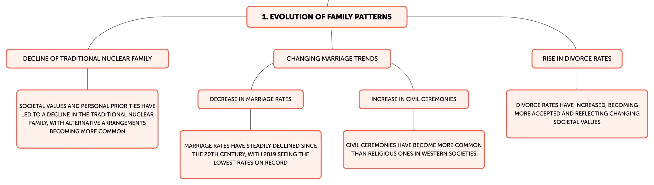 The evolution of family structures in Western societies reflects significant societal shifts. Traditional nuclear families are now one of many forms, with rising cohabitation, single-parent households, and LAT relationships. Sociologists study the implications of these changes, considering factors like marriage rates, divorce, childbearing choices, and economic influences. The diversity in family forms is analyzed through various sociological perspectives, highlighting the importance of recognizing non-traditional relationships.