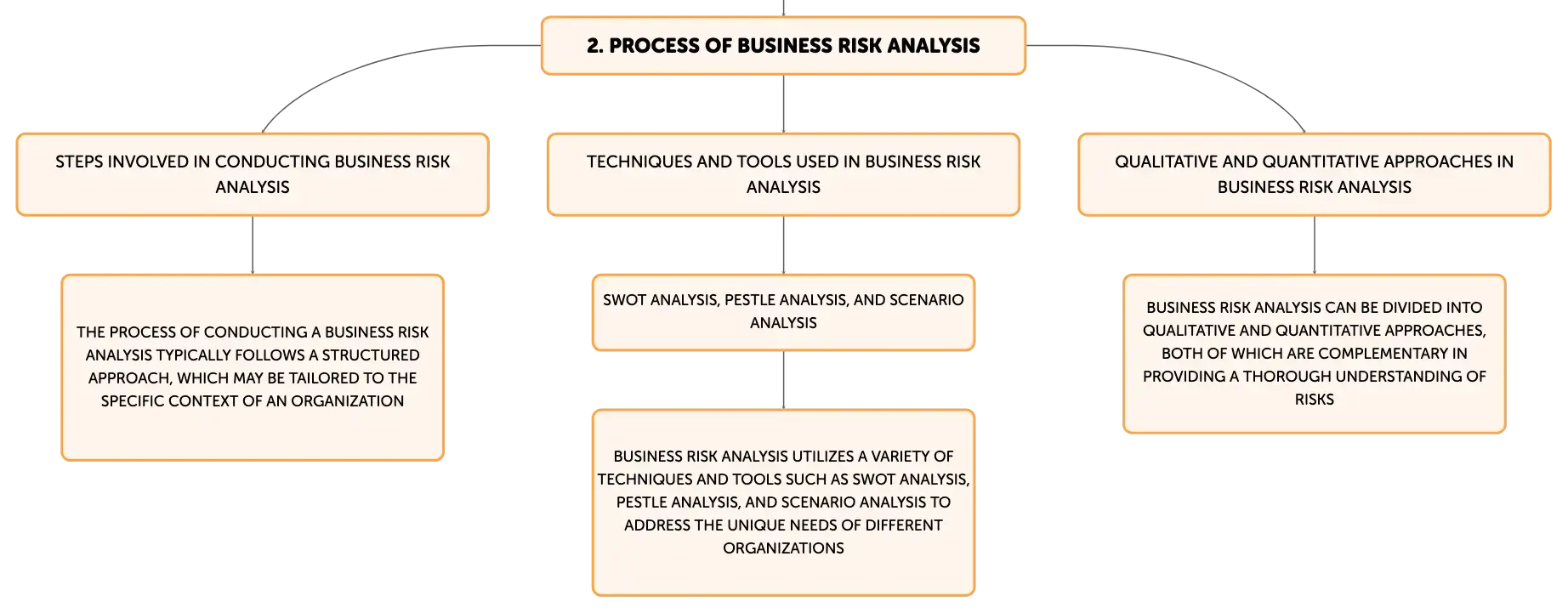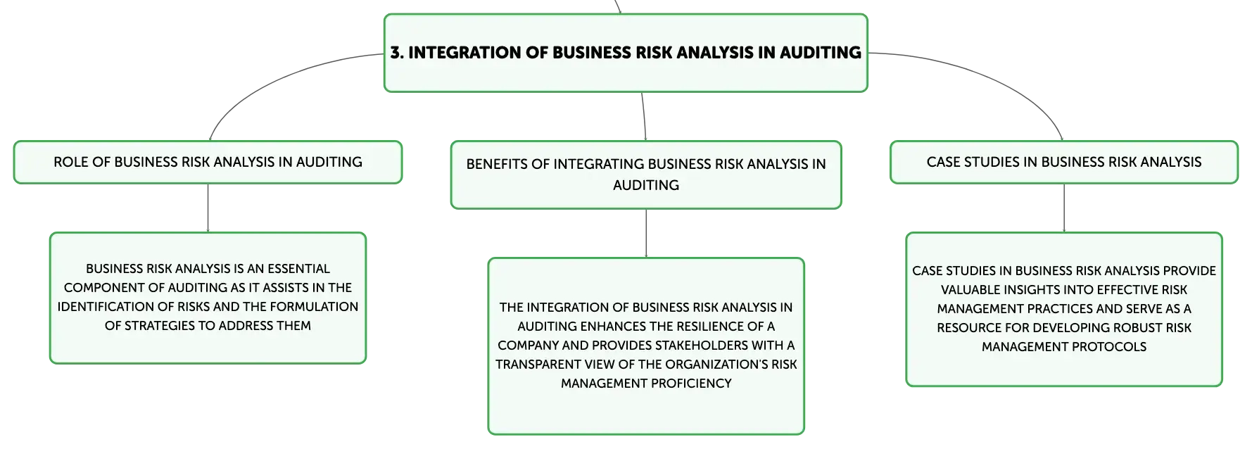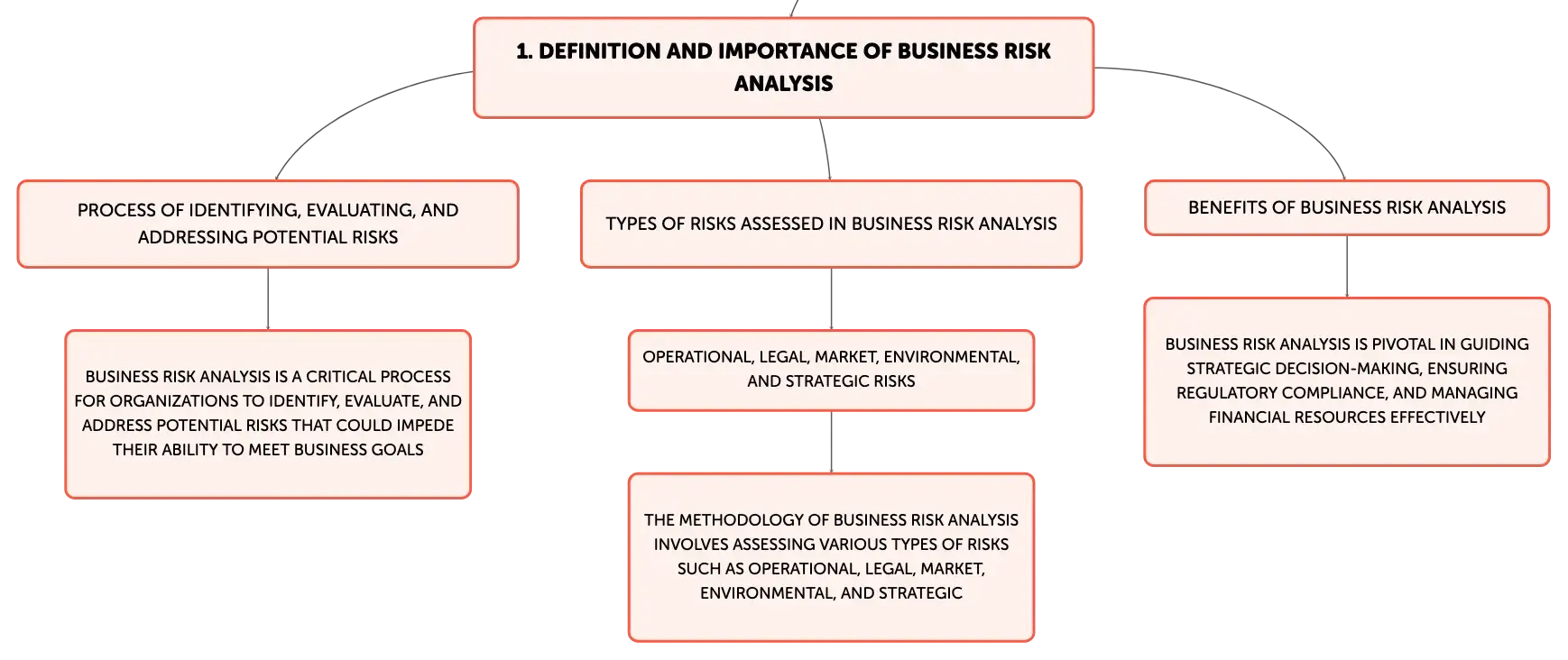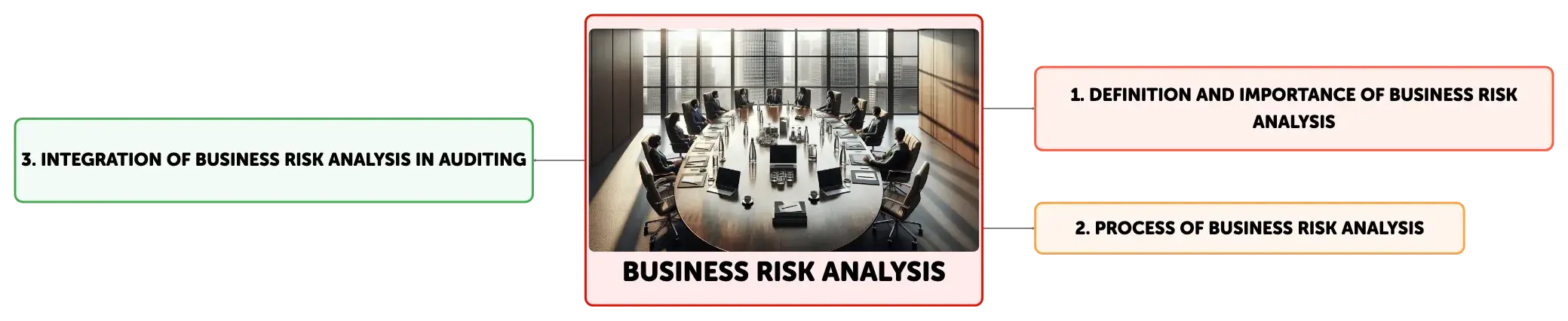 Business Risk Analysis is a vital process for identifying and managing potential risks to ensure a company's success. It involves evaluating operational, legal, market, environmental, and strategic risks, and is key in strategic decision-making. Techniques like SWOT, PESTLE, and Scenario Analysis are used to assess risks, while qualitative and quantitative approaches provide a comprehensive understanding. The integration of Business Risk Analysis into auditing and learning from case studies are also discussed.