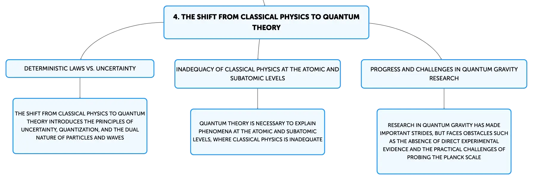 The shift from Classical Physics to Quantum Theory marks a significant change in our understanding of the physical world. Classical Physics is characterized by deterministic laws and continuous variables, whereas Quantum Theory introduces the principles of uncertainty, quantization, and the dual nature of particles and waves. This paradigm shift underscores the need for Quantum Theory to explain phenomena at the atomic and subatomic levels, where classical physics is inadequate.Advancements and Challenges in Quantum Gravity