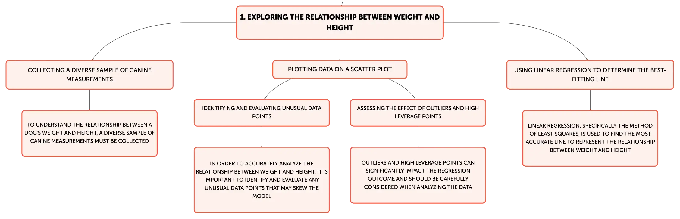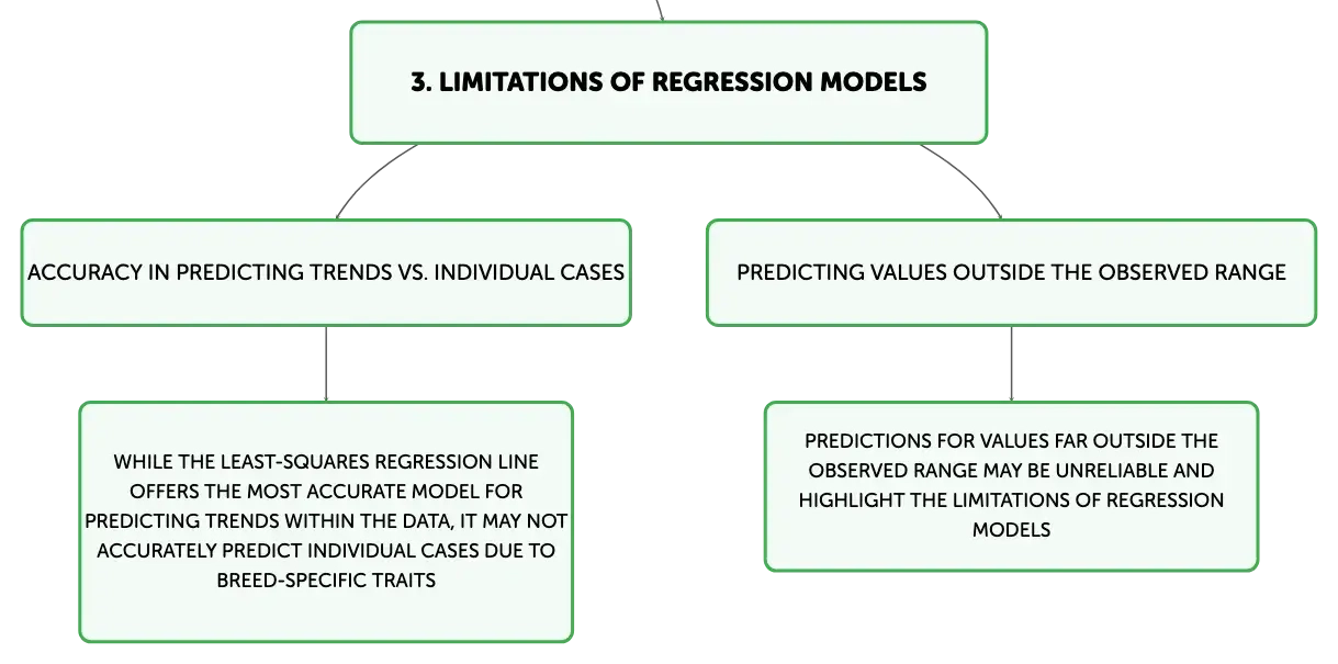 The least-squares regression line is a valuable tool for predicting trends within a population, but it may not accurately predict individual cases, particularly when extrapolating beyond the data range. For example, using the line to predict the height of a bulldog based on its weight might not be precise due to breed-specific traits. Similarly, predictions for weights far outside the observed range, such as for a bull mastiff, may be unreliable. These instances highlight the importance of recognizing the limitations of regression models in making individual predictions.Key Insights from Residual Sum of Squares Analysis