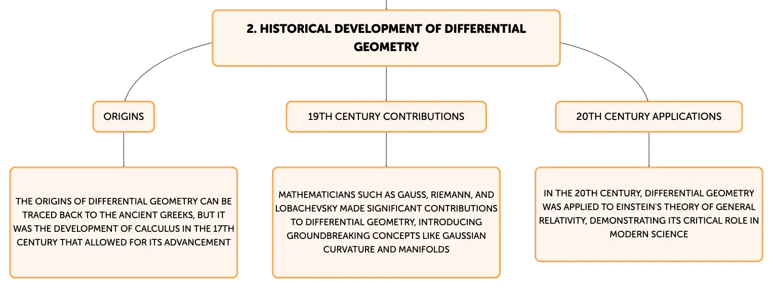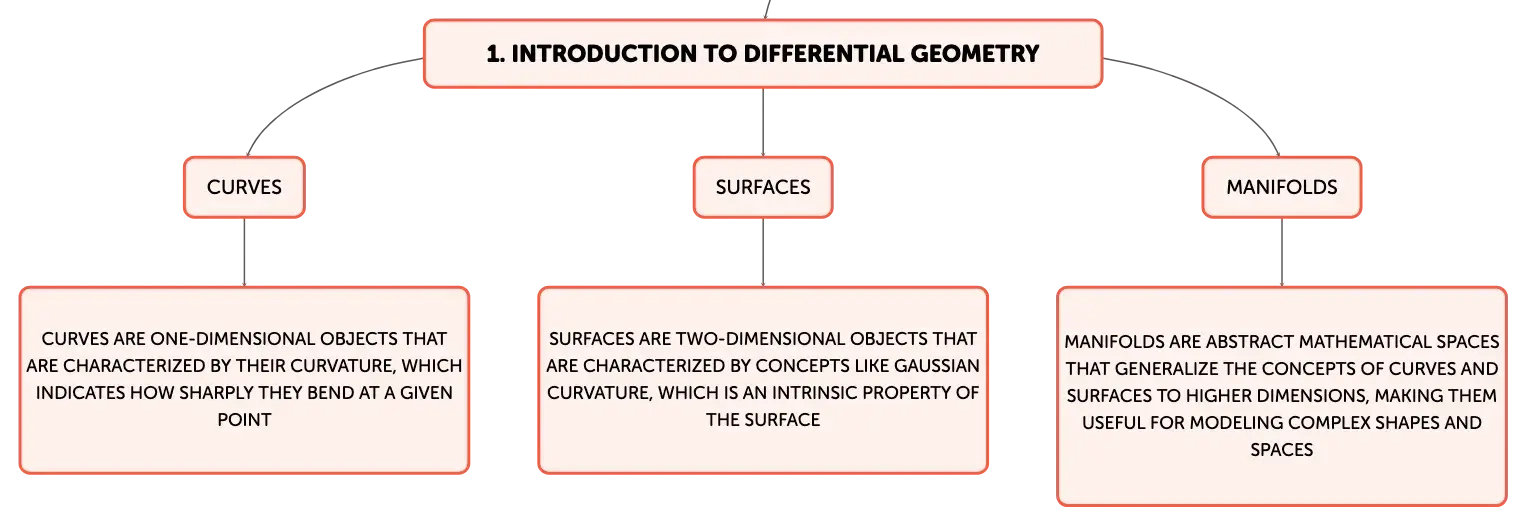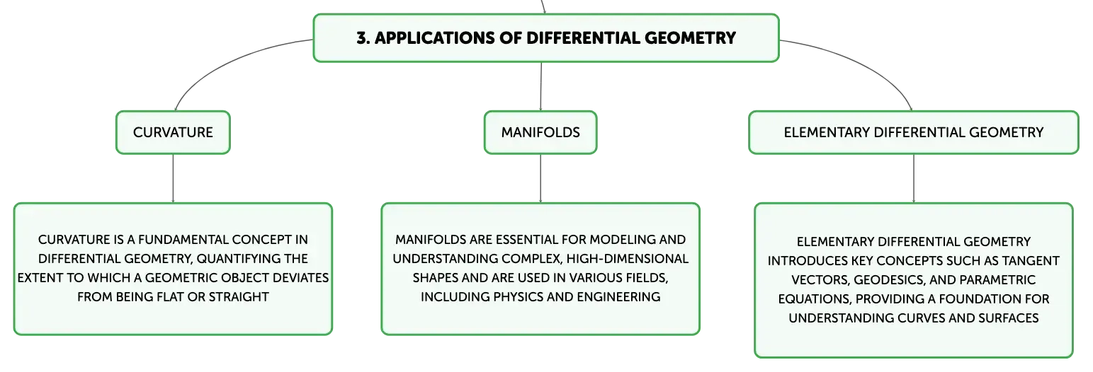 Differential geometry is a mathematical field that uses calculus and algebra to explore the properties of curves, surfaces, and manifolds. It's essential for understanding spatial structures in physics, engineering, and computer science. This discipline delves into intrinsic properties like curvature and torsion, and it's fundamental for applications ranging from architectural design to theoretical physics, including general relativity.