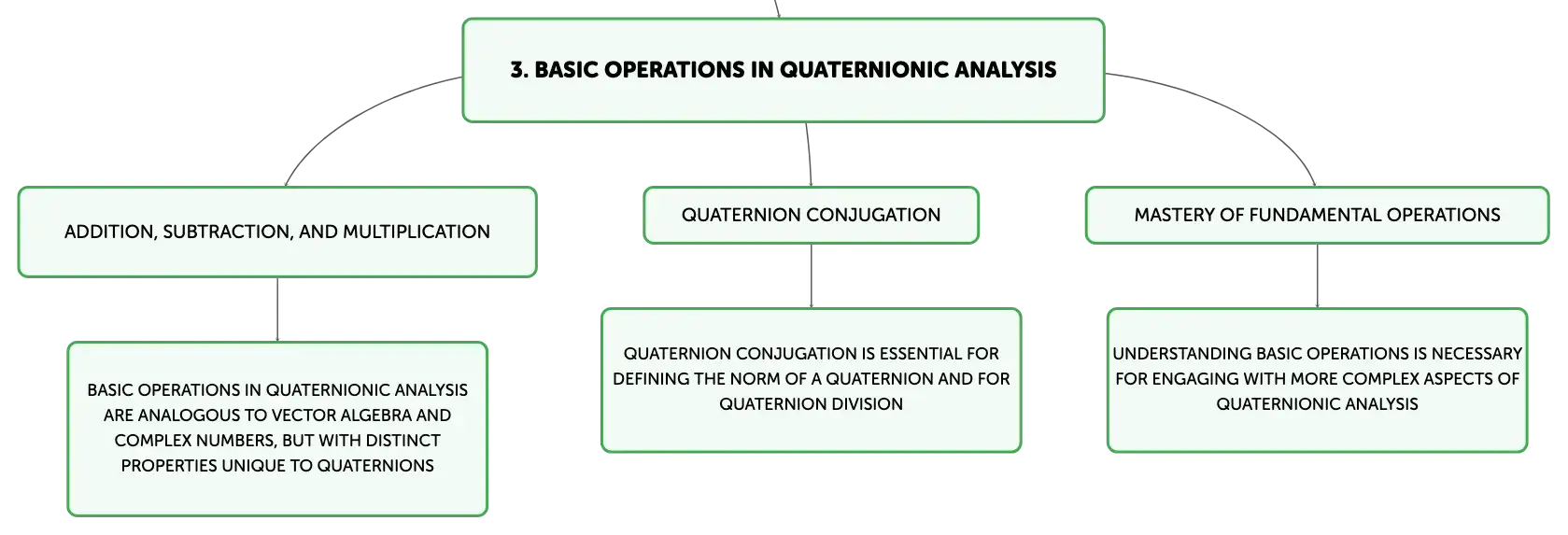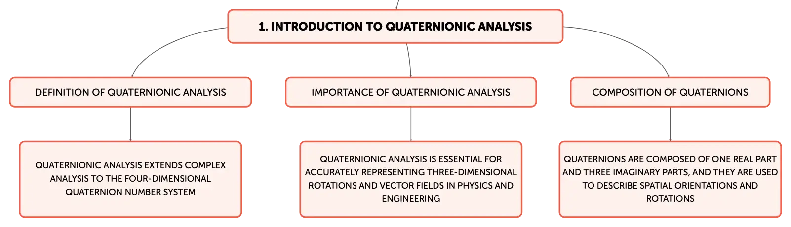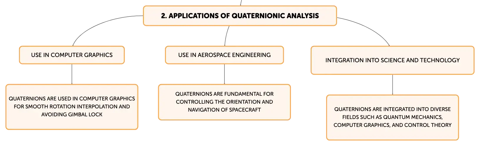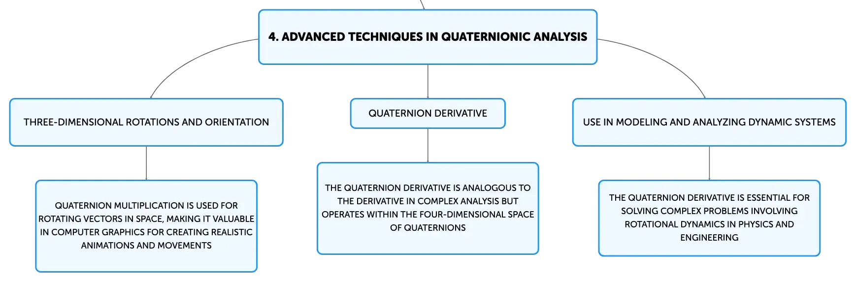 Quaternionic analysis extends complex analysis to quaternions, aiding in 3D rotations and spatial orientations. Essential in physics and engineering, it involves operations like addition, subtraction, and multiplication. Quaternions are crucial for realistic computer graphics animations and spacecraft navigation, showcasing their broad applicability.
