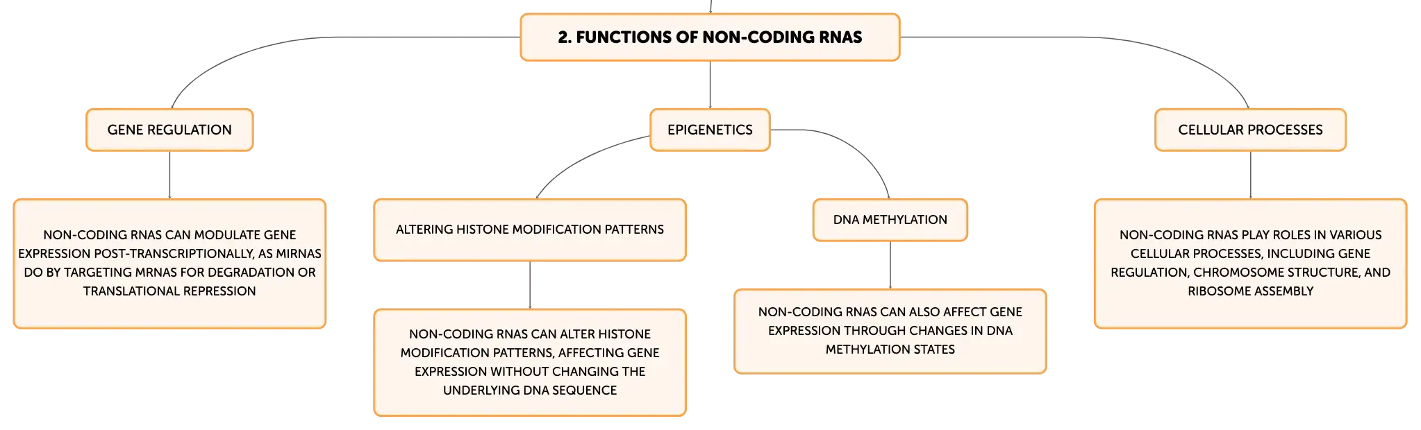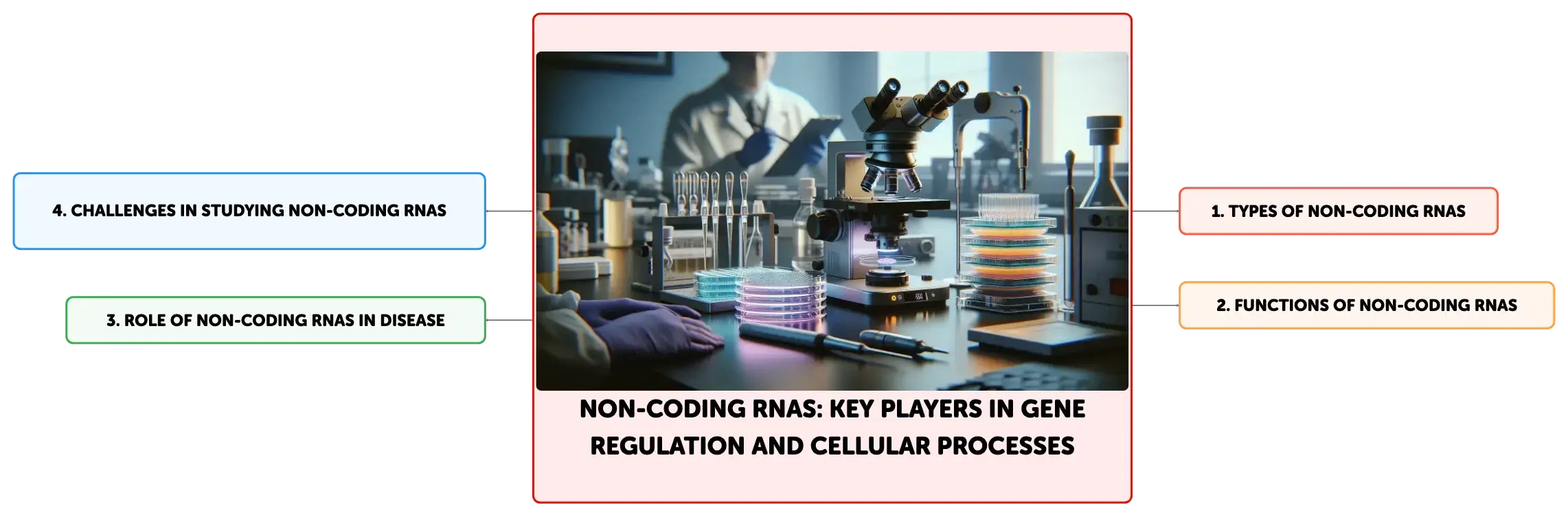 Exploring the roles of non-coding RNAs (ncRNAs) in cellular function, this overview highlights their importance in gene regulation, epigenetics, and disease. ncRNAs, including miRNAs, siRNAs, and lncRNAs, are pivotal in controlling gene expression, chromatin organization, and maintaining cellular homeostasis. Their dysregulation can lead to diseases like cancer, making them key targets for medical research and novel therapies.