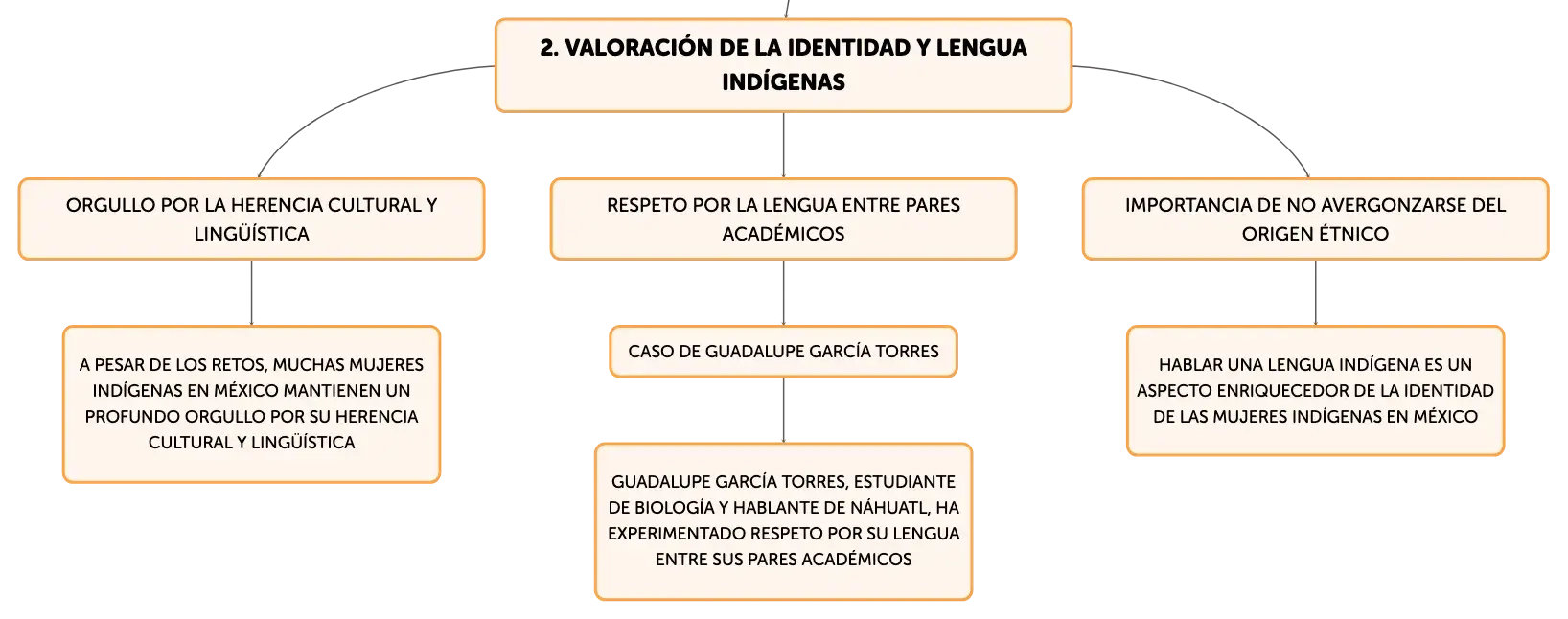 Ella enfatiza la importancia de no sentir ______ por su origen étnico y piensa que hablar una lengua indígena enriquece su ______.
