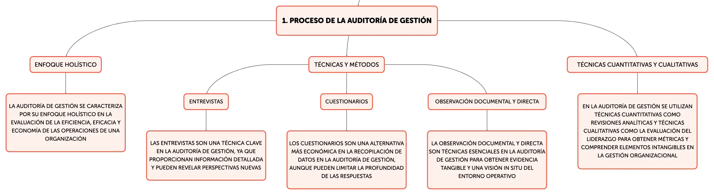 La auditoría de gestión es un proceso integral que evalúa la eficiencia, eficacia y economía de las operaciones de una organización. Este tipo de auditoría se distingue por su enfoque holístico y su aplicación en una amplia gama de contextos, utilizando diversas técnicas y métodos para recopilar y analizar datos sobre la gestión. Las entrevistas son una técnica clave, ya que proporcionan información detallada y pueden revelar perspectivas nuevas, aunque pueden ser costosas y estar sujetas a sesgos personales. Los cuestionarios ofrecen una alternativa más económica y preservan el anonimato, pero pueden limitar la profundidad de las respuestas. La observación documental es esencial para obtener evidencia tangible, mientras que la observación directa ofrece una visión in situ del entorno operativo, aunque ambas requieren una selección y análisis cuidadosos de la información.