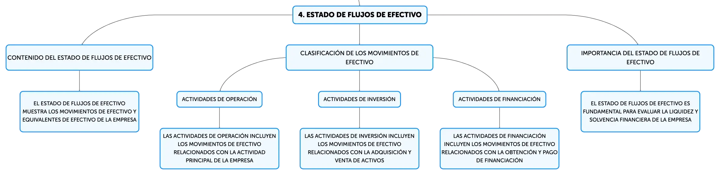 Movimientos de efectivo clasificados en operación, inversión y financiación.