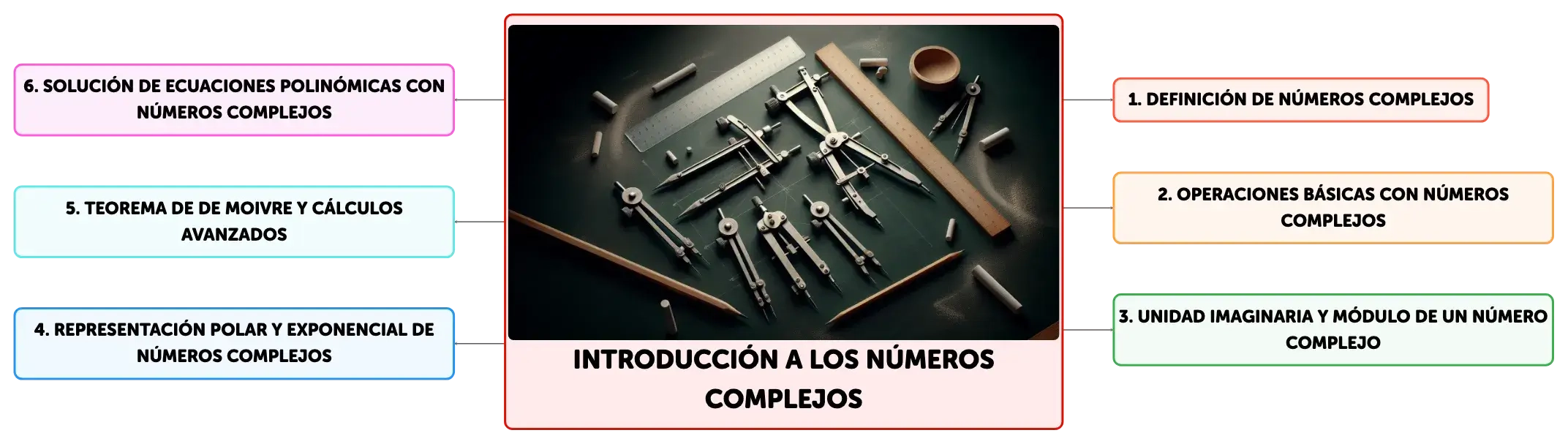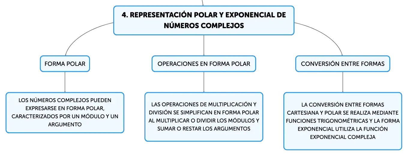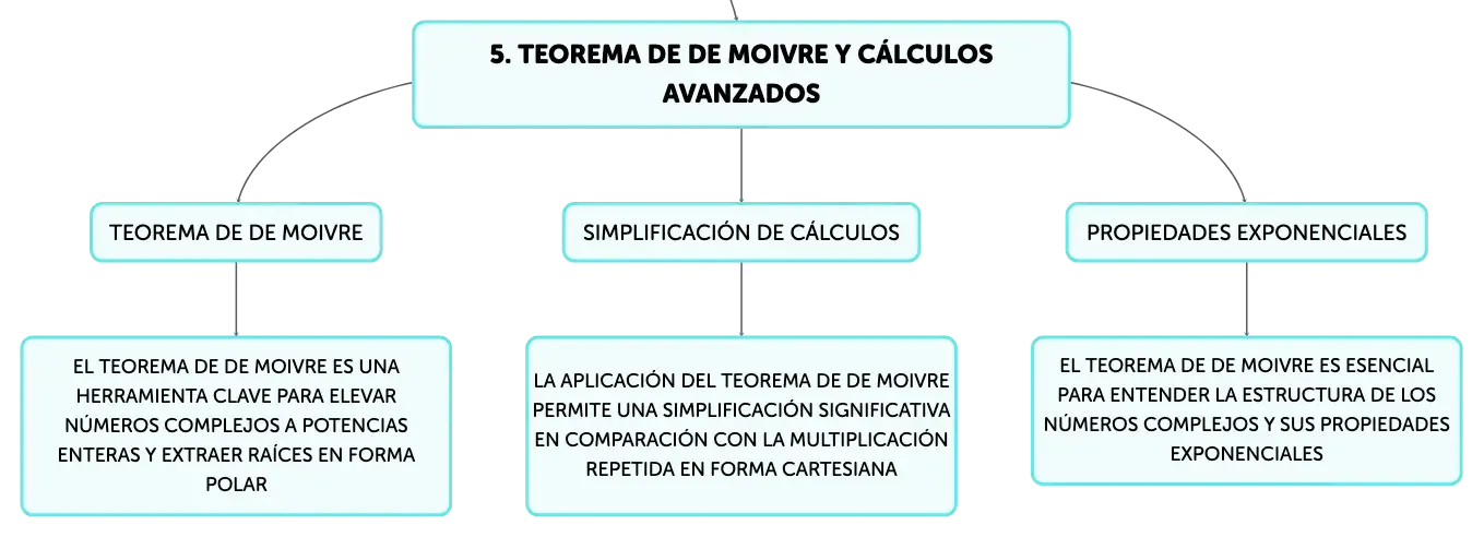 Los números complejos son fundamentales en matemáticas, extendiendo los reales con una parte imaginaria. Se representan como a + bi, donde 'i' es la unidad imaginaria. Este concepto es clave para resolver ecuaciones polinómicas y se visualiza en el plano de Argand. Las operaciones incluyen suma, resta, multiplicación y división, y se facilitan en su forma polar o exponencial. El Teorema de De Moivre es esencial para potencias y raíces complejas.