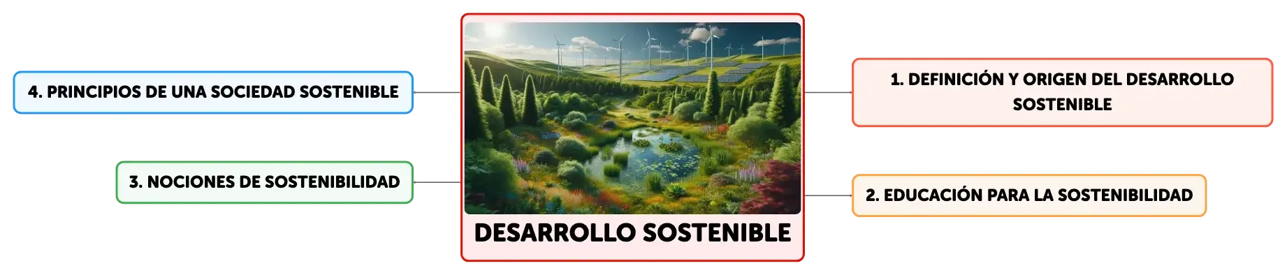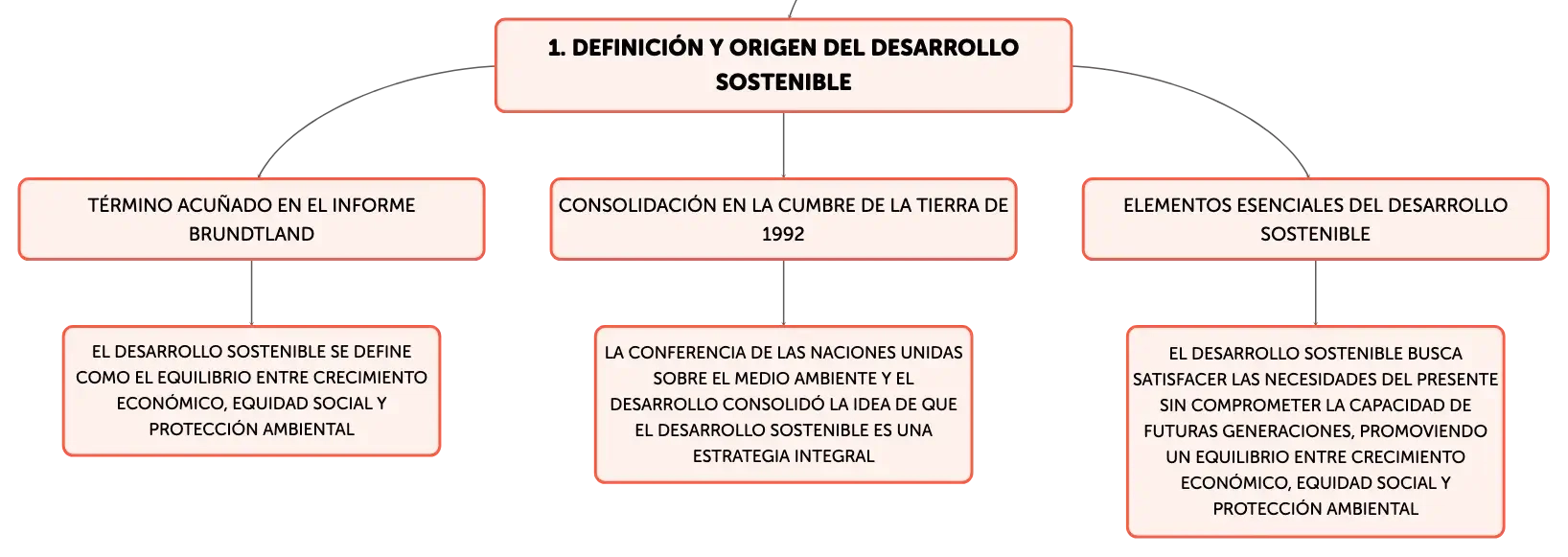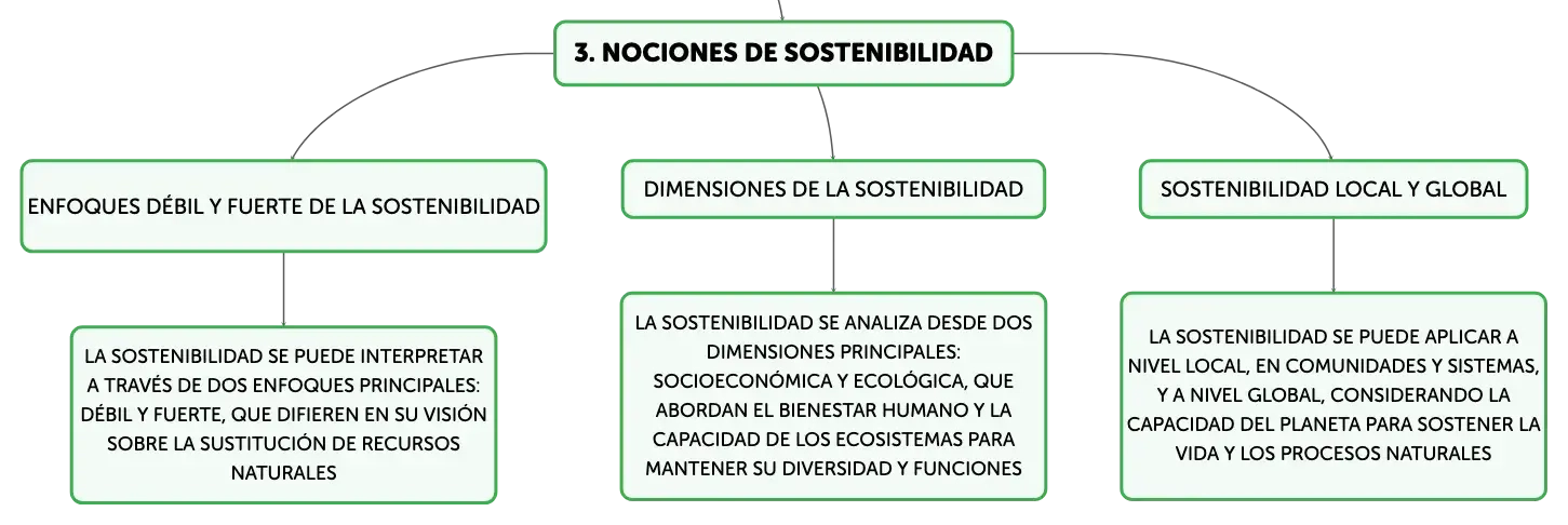 El desarrollo sostenible busca equilibrar crecimiento económico, equidad social y protección ambiental. Con raíces en el informe Brundtland de 1987, este concepto ha evolucionado para incluir educación y prácticas que promueven la sostenibilidad en todos los aspectos de la sociedad. Se distingue entre sostenibilidad débil y fuerte, enfatizando la importancia de preservar recursos naturales insustituibles. Las dimensiones socioeconómicas y ecológicas son cruciales para el bienestar humano y la biodiversidad, respectivamente, guiando a sociedades hacia un uso responsable de recursos y un desarrollo inclusivo y respetuoso con el medio ambiente.
