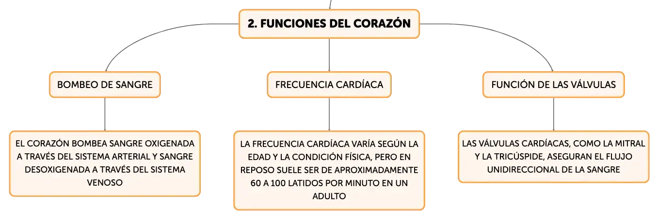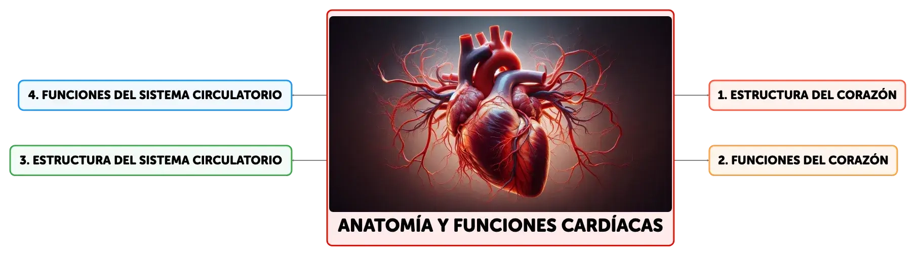 La anatomía cardíaca incluye el pericardio, miocardio y endocardio, y se divide en cuatro cámaras. Las funciones cardíacas abarcan el bombeo de sangre oxigenada y desoxigenada, regulado por válvulas. El sistema circulatorio, compuesto por arterias, venas y capilares, permite el intercambio de sustancias y la distribución de nutrientes y oxígeno a los tejidos, mientras que las venas retornan la sangre al corazón.