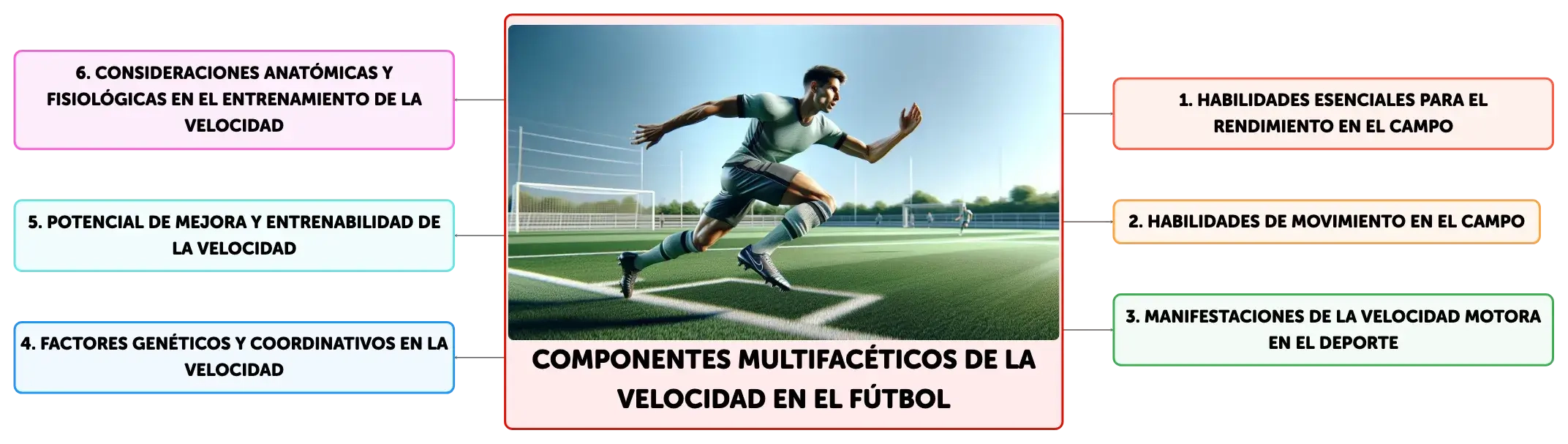 La velocidad en el fútbol es crucial y se manifiesta en habilidades como la percepción, anticipación, decisión y reacción. Factores genéticos y entrenamiento determinan la capacidad de velocidad, que puede mejorarse con prácticas específicas. La composición de fibras musculares y la coordinación motriz son esenciales en este proceso, así como la técnica deportiva y la motivación personal.