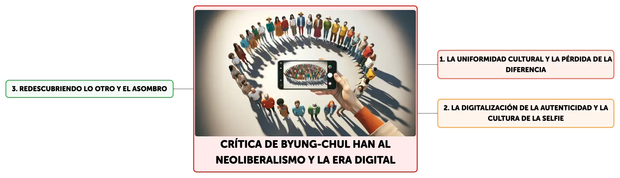 Byung-Chul Han critica la homogeneización cultural y la pérdida de autenticidad en la era digital. Aborda la violencia de la globalización, la reacción del terrorismo y la cultura de la selfie. Propone la ética de la escucha y la revalorización de lo otro para enfrentar la uniformidad neoliberal.