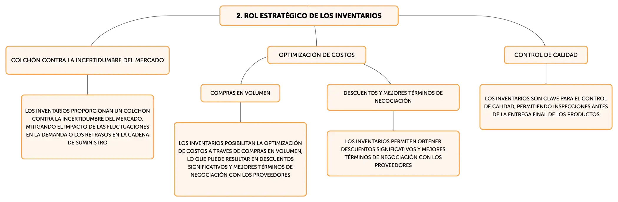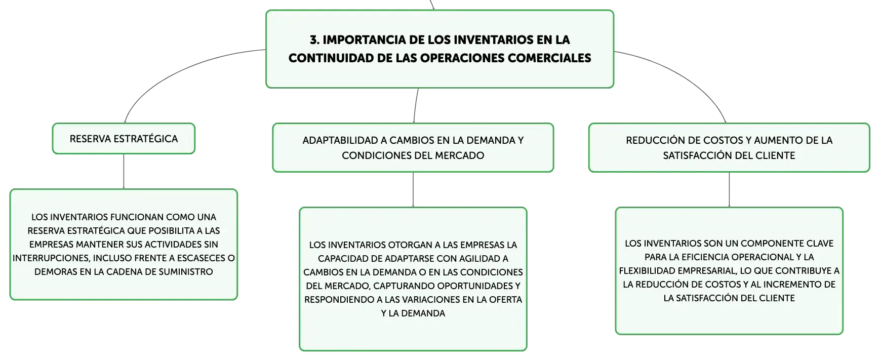 Los inventarios son esenciales en la gestión de negocios, asegurando la continuidad operacional y la satisfacción del cliente. Su adecuada administración permite enfrentar la incertidumbre del mercado, optimizar costos y mejorar la calidad. Métodos como el análisis ABC y el modelo de Wilson, junto con sistemas de inventario precisos y la filosofía JIT, son fundamentales para la eficiencia y la reducción de desperdicios en la producción.