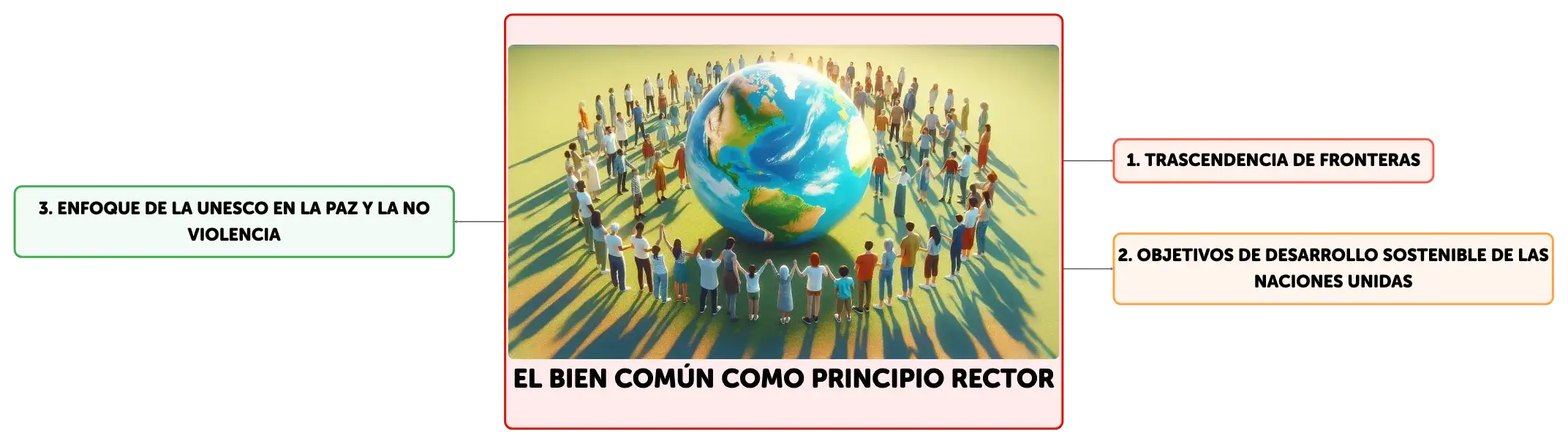El bien común emerge como un objetivo global, integrando los Objetivos de Desarrollo Sostenible de la ONU y la visión de la UNESCO sobre la paz y no violencia. La sostenibilidad ambiental, la justicia social y la participación ciudadana son pilares para un futuro compartido, respetando la diversidad cultural y los derechos humanos, y promoviendo políticas que beneficien a todos sin dañar el planeta.