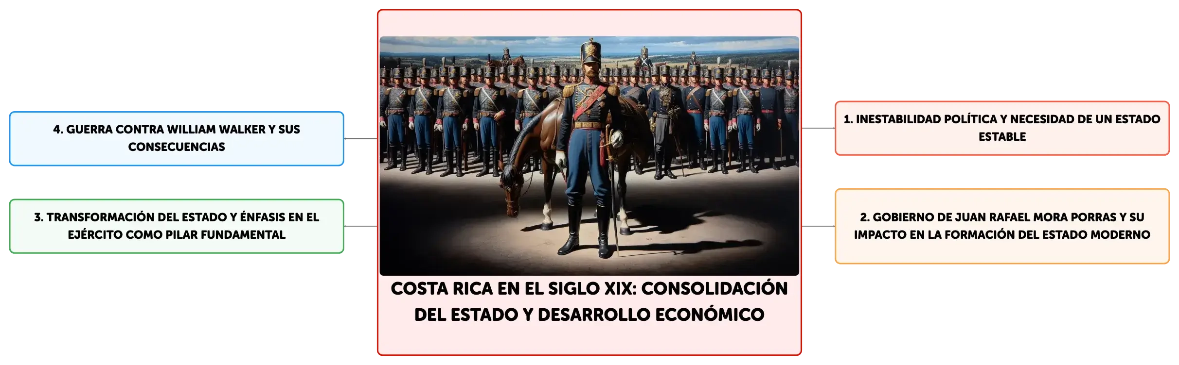 La consolidación del Estado costarricense y el desarrollo de su economía cafetalera en el siglo XIX se entrelazan con la figura de Juan Rafael Mora Porras. Su gobierno, marcado por la centralización del poder y alianzas estratégicas, impulsó reformas fiscales y mejoras en infraestructura. La guerra contra los filibusteros y las tensiones con Nicaragua definieron este periodo crucial.