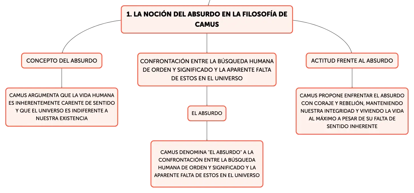 Camus denomina "el absurdo" a la confrontación entre la búsqueda humana de orden y significado y la aparente falta de estos en el universo