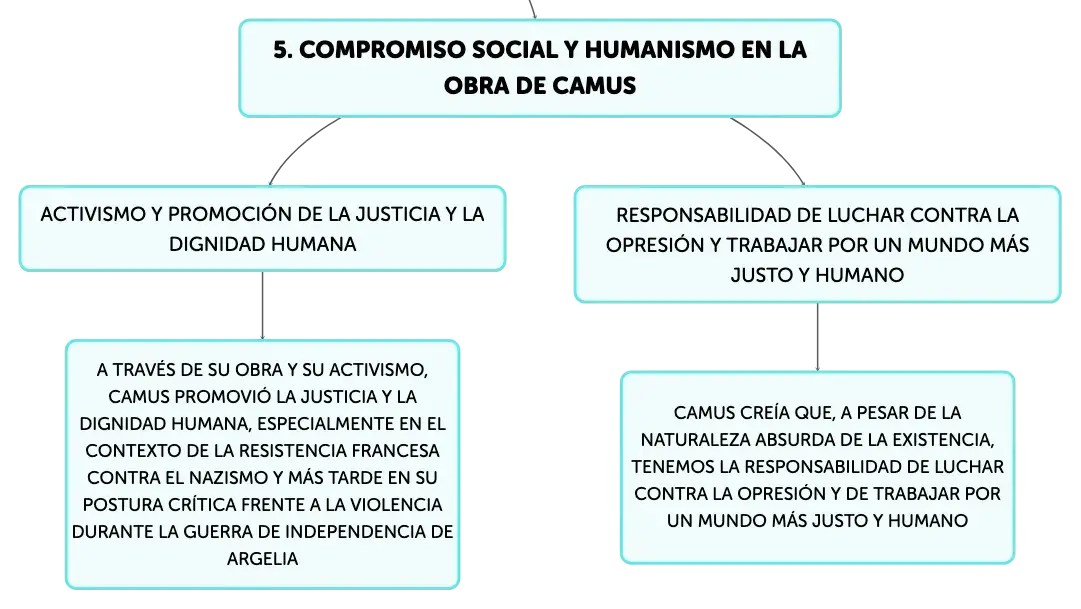 Camus creía que, a pesar de la naturaleza absurda de la existencia, tenemos la responsabilidad de luchar contra la opresión y de trabajar por un mundo más justo y humano