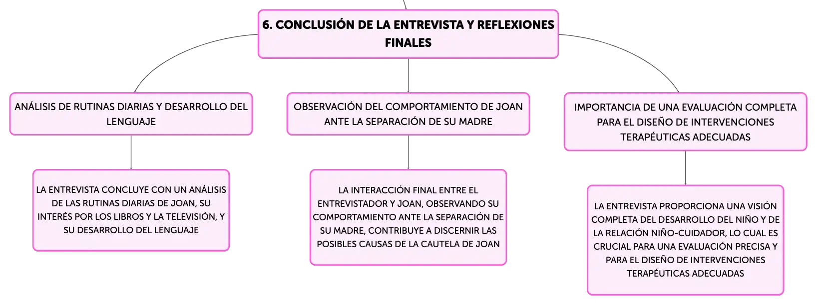 La interacción de Joan con el ______ proporciona información sobre el ______ de la niña, su ______ de separación y cómo es la relación entre ______ e hija.