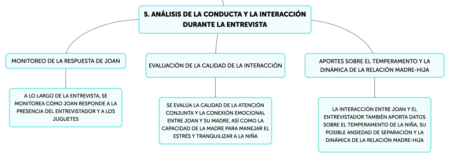 Durante la ______, se observa la reacción de Joan ante el ______ y los ______, así como la forma en que su ______ pone límites y dirige la interacción.