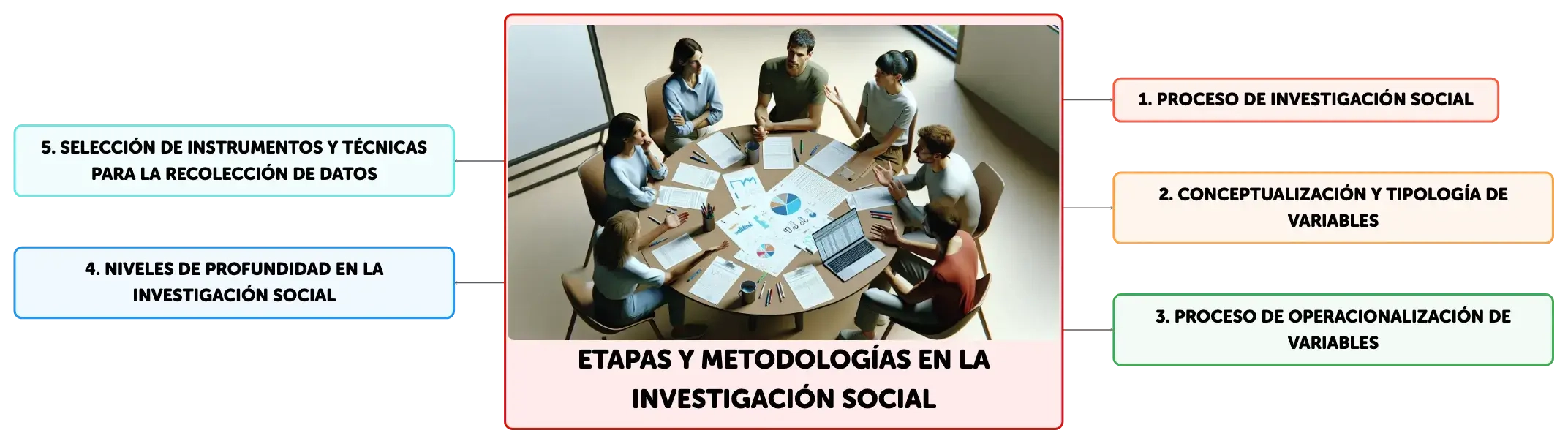 La investigación social abarca desde la identificación de problemas hasta la presentación de resultados. Se utilizan metodologías cualitativas y cuantitativas para analizar fenómenos sociales, operacionalizando variables y eligiendo instrumentos de recolección de datos adecuados para estudios exploratorios, descriptivos, correlacionales y explicativos.