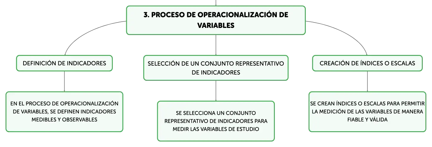 El proceso incluye definir indicadores, seleccionar un conjunto ______ de estos y crear índices o escalas para la ______ de las variables.