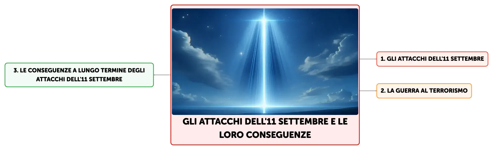 L'11 settembre 2001 ha segnato una svolta storica con gli attacchi di Al Qaeda alle Torri Gemelle e al Pentagono, innescando la Guerra al Terrorismo e cambiando la geopolitica mondiale. La risposta dell'Occidente, le guerre in Afghanistan e Iraq e le loro ripercussioni, hanno ridefinito le relazioni internazionali e la sicurezza globale.