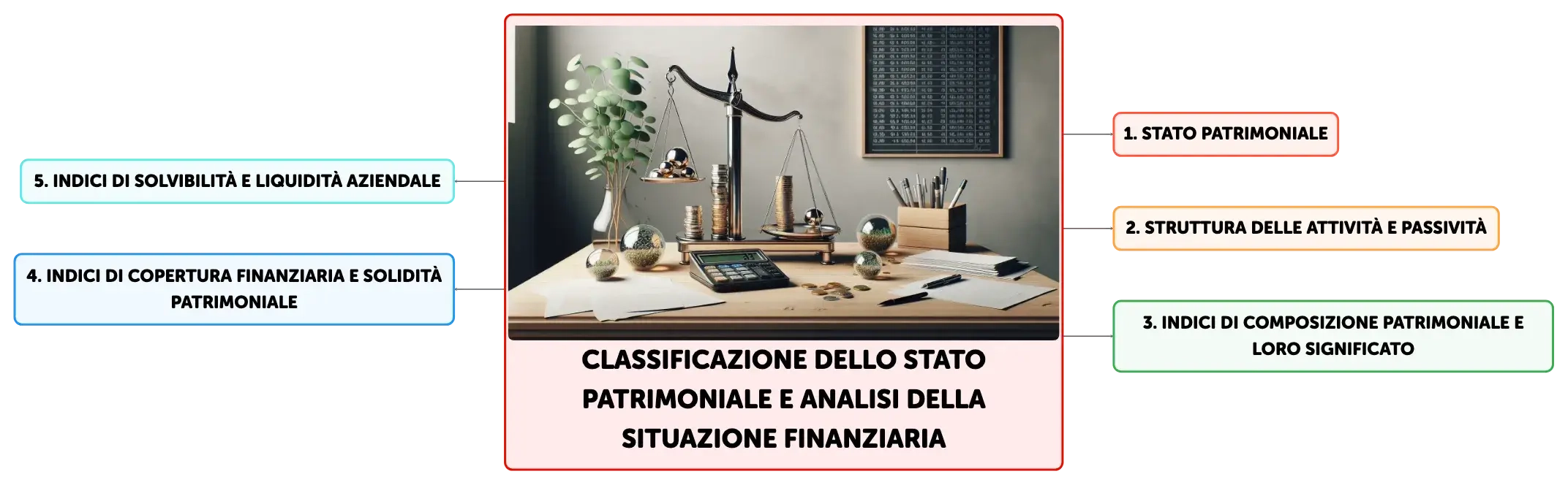 La struttura dello Stato Patrimoniale rivela la situazione finanziaria di un'azienda, distinguendo tra attività correnti e fisse, passività correnti e consolidate. Gli indici di composizione patrimoniale, copertura finanziaria, solvibilità e liquidità aziendale sono essenziali per valutare la solidità e la capacità di gestione delle risorse finanziarie a breve e lungo termine.