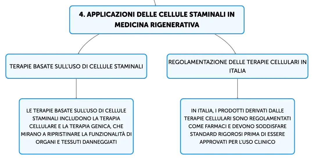 Le cellule staminali sono fondamentali per la medicina rigenerativa, con tipi come le staminali embrionali pluripotenti e le adulte per la riparazione tessutale. Le staminali mesenchimali e emopoietiche offrono nuove prospettive cliniche.